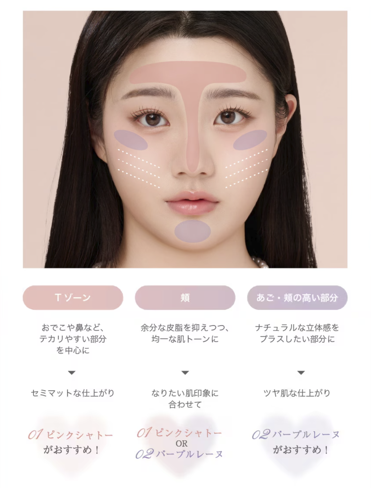もう一つの色味である、「01 ピンクシャトー」はイエベさんにおすすめで、パールが入っていない分よりマットで血色のあるお肌にしてくれます。